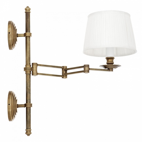 Бра EICHHOLTZ. FAVONIUS, арт 109122, отделка состаренная латунь, белый абажур, H=510 мм L=370-500 мм, под лампу E14 40W.