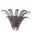 Светильник отделан светлой матовой латунью и украшен двумя рядами ребристого дымчатого стекла, напоминающего листья, что создает впечатление тропической кроны дерева.