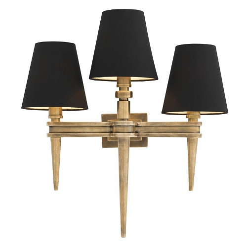 Бра EICHHOLTZ. WATERLOO TRIPLE, арт 110990, отделка состаренная латунь, черные абажуры, H=500 мм, под лампы 3xE14 40W.