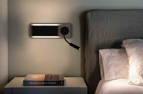 Бра Faro. MOOD, арт 20062, цвет черный + дерево, с двойным перерключателем, под лампы 2xLED 3W 3000K 67lm и для чтения LED 2W 3000K 105lm CRI>80.