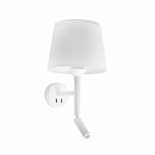Бра Faro. SAVOY, арт 20302-92, цвет матовый белый/белый, двойной переключатель Вкл/Выкл, под лампы E27 15W и для чтения LED 3W 3000K 160Lm.