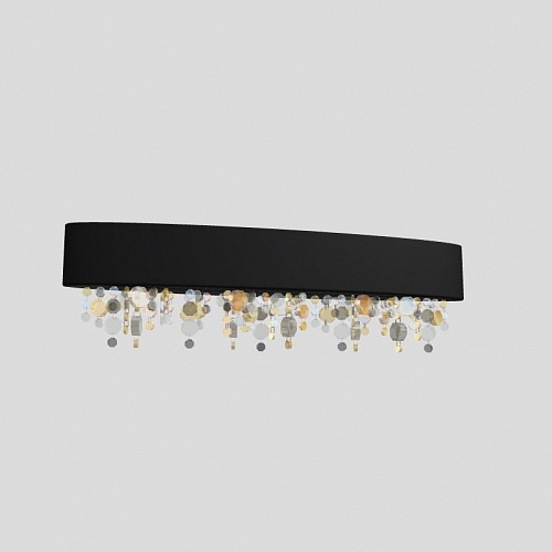 Бра MASIERO. OLA A2 OV 70 V90, L=700 мм, цвет матовый черный, украшена дымчатыми подвесками, под лампы 2xE27 60W.