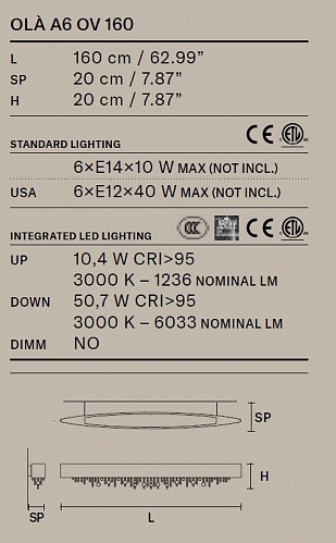 Интерьерный светильник OLA A6 OV 160 V83 - купить по цене 142800 руб. с доставкой в Москве в интернет-магазине www.littess.ru или забрать самовывозом. На сайте компании вы можете получить информацию о доставке и стоимости, возврате и гарантии позвонив оператору по телефону: +7 (495) 721-84-03 или воспользоваться обратным звонком. OLA A6 OV 160 V83, OLA A6 OV 160 V83 Masiero – одна из лучших на рынке моделей в категории Интерьерные светильники.