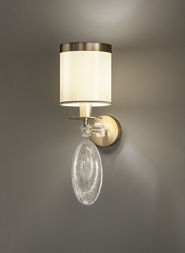 Бра MASIERO. OLYMPYA A1 G14, H=380 мм, цвет полированная латунь, украшена стеклянными подвесками под горный хрусталь, под лампу E14 40W.