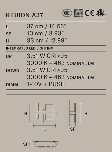 Интерьерный светильник RIBBON A37 V90 - купить по цене 41250 руб. с доставкой в Москве в интернет-магазине www.littess.ru или забрать самовывозом. На сайте компании вы можете получить информацию о стоимости и доставке, гарантии и возврате позвонив менеджеру по телефону: +7 (495) 721-84-03 или воспользоваться бесплатным звонком. RIBBON A37 V90, RIBBON A37 V90 Masiero – одна из желаемых на рынке моделей в категории Интерьерные светильники.