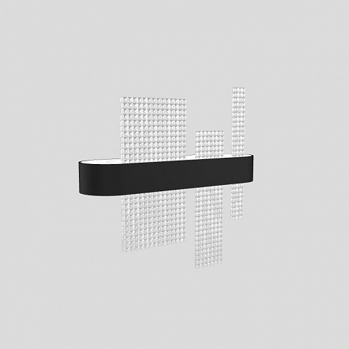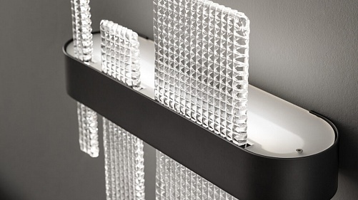 Бра MASIERO. RIBBON A37 V90, L=370 мм, цвет матовый черный, украшена венецианским рельефным стеклом, под лампы UP LED 3,51W 463lm и DOWN LED 3,51W 463lm, CRI>95 3000K, диммируемый: 1-10V, PUSH.