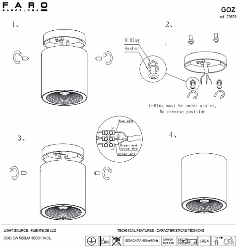 Фасадные накладные потолочные светильники Faro. GOZ, арт 70575, цвет темно-серый, IP54, под LED COB 8W 3000K 500lm CRI>80, луч 40°