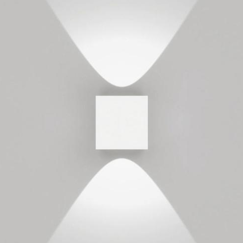 Фасадные светильники Artemide. EFFETTO, арт 42012LN00T, лучи 2x50º, цвет светло-серый, L=140 W=140 H=140mm, IP65, под лампы 2xLED 7W 4000K