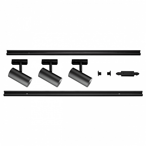 Две высоковольтные шины 1000 мм, один подвод питания/коннектор прямой, одна пара заглушек, три светильника со встроенными светодиодными источниками света.