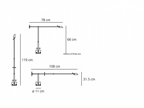 Лампы настольные Artemide. TIZIO, арт 009210A, цвет черный, с диммером, H=1190 мм, под лампу 1xLED 8W 3000K 400lm 220V.