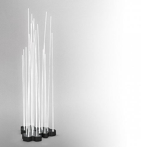 Свет рассеивается через 7 стержней различной высоты, создавая впечатление растущего тростника. Часть света также распространяется на полу вокруг основания. ¶Основание имеет неправильную форму, которая позволяет создавать мозаичную связь с другими светильниками для получения сложных композиций.