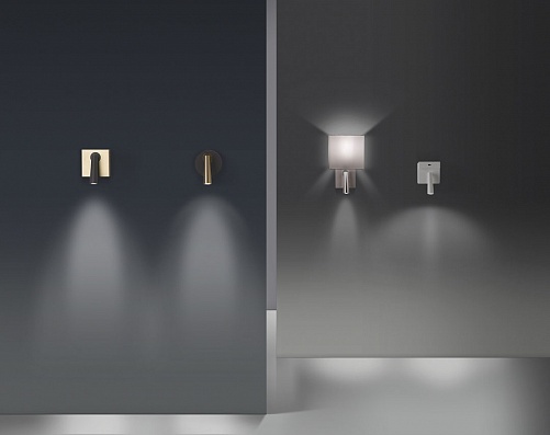 Накладные настенные ориентируемые светильники LEDS C4. GAMMA, арт 05-6420-81-Z5, цвет сатиновый никель/серый городской, основание квадратное, под LED 2,2W 2700K 137lm CR80 25°