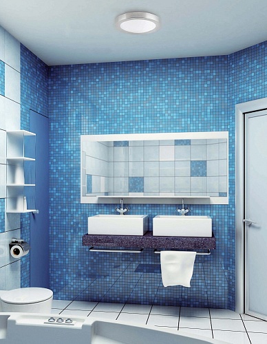Накладные потолочные светильники Faro. LOGOS, арт 62981, цвет полированный алюминий, D=350мм, IP44, под лампы 2xE27 20W