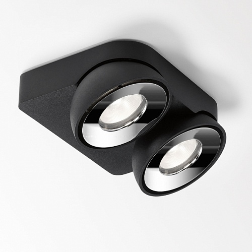 Накладные поворотные светильники Delta Light. TWEETER M ON 2 92750 WDL, арт 41851812923WDLB-C, цвет черный/хром, отражатели 2xWFL-50°, под 2xLED 10,4W CRI>90 2700K 1032lm 48V
