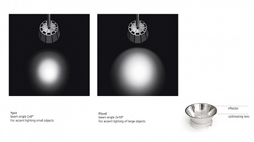 Благодаря инновационной системе теплоотвода, воздух фильтруется через открытые пробелы литого алюминиевого корпуса, обеспечивая эффективность и длительный срок службы светодиодного модуля. Угол освещения 2x8°. Регулируемая яркость освещения.