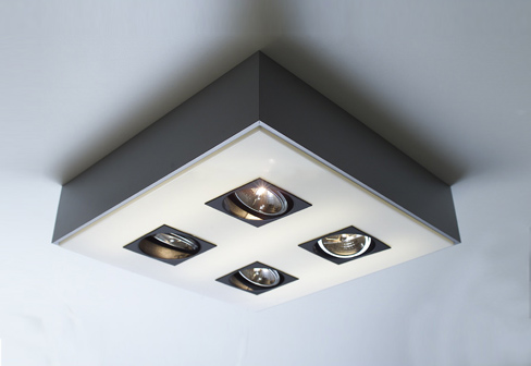 Накладные светильники Artemide. ANDROMEDA 600х600, арт 116320M, цвет серый, регулируемые прожекторы, L=612 W=612mm, под лампы 3xG5 24W + 4xG53 50W