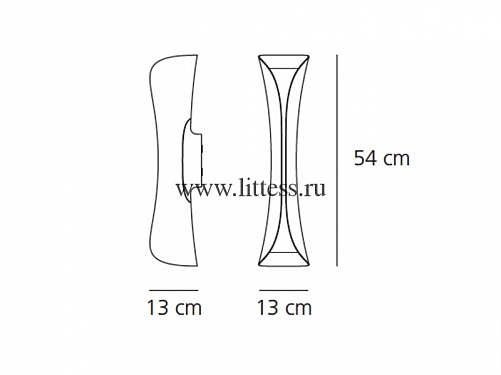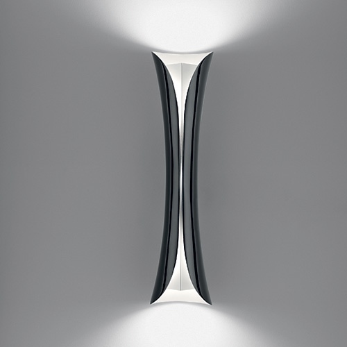 Бра изготовлен из стали, где наружная часть корпуса окрашена в черный цвет, а внутренняя в белый. Внутренняя панель отражает свет на потолок и пол с рассеиванием вдоль вертикального разреза светильника.