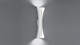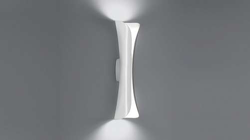 Бра изготовлен из стали, где наружная часть корпуса окрашена в красный цвет, а внутренняя в белый. Внутренняя панель отражает свет на потолок и пол с рассеиванием вдоль вертикального разреза светильника.