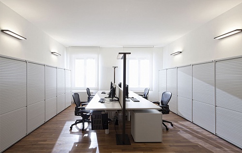 Алюминиевый корпус с призменным рассеивателем из прозрачного поликарбоната. Распределение света: 37% прямых и 63% косвенных лучей.