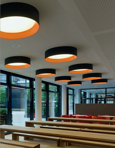 Накладные светильники Artemide. TAGORA 970, арт 017710M, цвет черный/оранжевый, H=230 мм D=970 мм, под лампы 4xG5 24W+4xG5 39W 19400lm 2x56°.