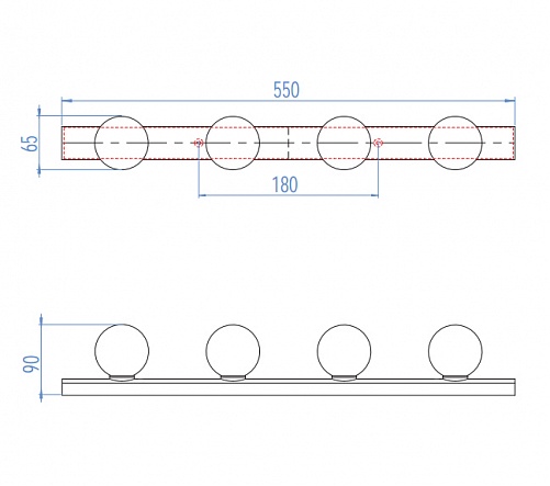 Накладные светильники Astro Lighting. CABARET FOUR, 1087009, цвет полированный хром, L=550 мм, IP44, под лампы 4xG9.