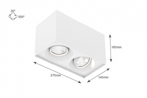Накладные светильники DOXIS. ATLAS BOX SURFACE MOUNTED, арт 1031-22-24-927-01, цвет матовый белый, под лампы 2xLED 31W 2700K 2570lm Ra90 22°.