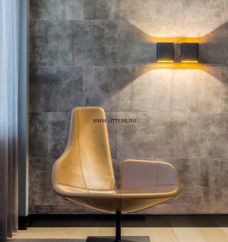Накладные светильники Modular. Duell wall 2xLED <900lm TrE DIM GI, арт 11074569, цвет голубой металлик (внутри алюминиевый), цветность освещения теплый белый, под лампы 2xLED Array 10.5W.