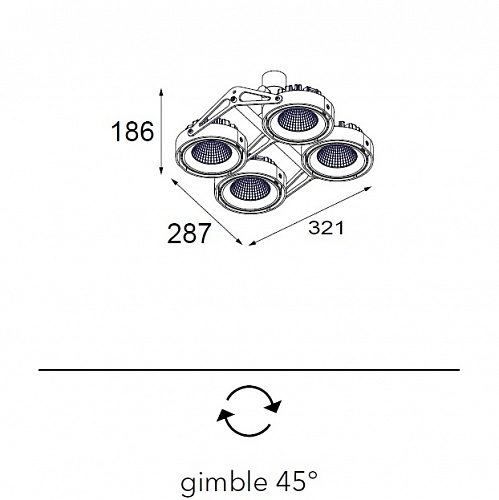 Накладные светильники Modular. NOMAD 111 4X LED GE, арт 12024005, поворотные, цвет алюминий, отражатель узкий, луч 15°, под 4xLED Array 16.25W 500mA 2700K CRI90+
