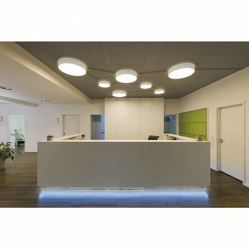 Встроенный источник света управляется DALI и впечатляет своим сроком службы в течение 50 000 часов, приемлемой энергоэффективностью (120 лм/Вт) и более высокой составляющей непрямого освещения. Лампы постоянного тока будут продолжать потрясающе светить даже при отключении питания, благодаря встроенному драйверу постоянного тока.