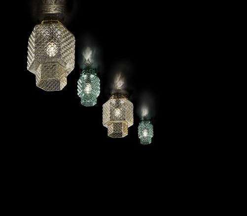 Накладные светильники SYLCOM. CASA BLANCA Модель 1102/LUX/T/OCE, титановая металлическая конструкция, отделка стеклом цвета морской волны, под лампу E14 42W.