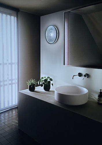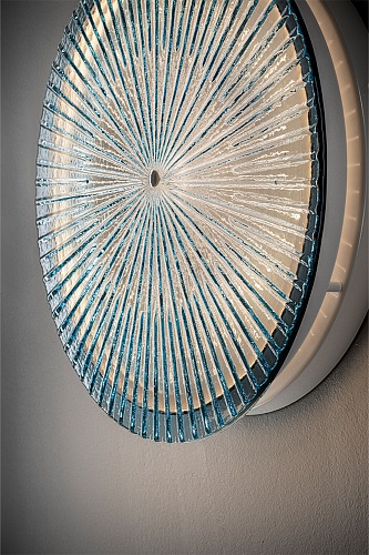 Накладные светильники SYLCOM. LULU Модель 0613/LUX/B/DEN, белая металлическая конструкция, отделка стеклом джинсового цвета, D=300 мм, под лампу LED 15W 3000K CRI90 1600lm.