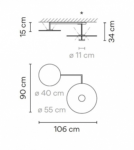 Накладные светильники Vibia. Flat 5910, арт 5910-73-1A, цвет белый/серый, диммируемый, L=1060 мм W=900 мм, под лампы 3xLED PLATE 13,4W 700mA 2700K CRI>90 5220lm.
