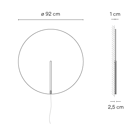 Накладные светильники Vibia. Guise 2262, арт 2262-18-26, цвет графит, диммируемый, D=920 мм, под лампы LED STRIP 2x3,6W и 2x5W 3000K 1504lm 24V.