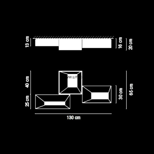 Накладные светильники Vibia. Link 5385, арт 5385-18, цвет глянцевый графит, H=200 L=1300 W=650 мм, под лампы 2G11 4x18W и 8x24W.