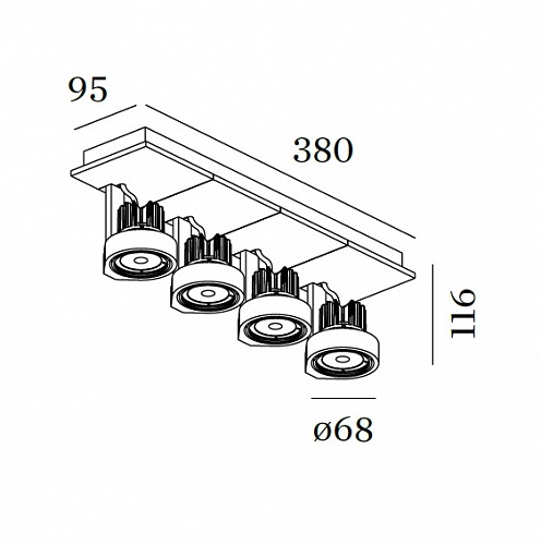 Накладные светильники Wever Ducre. PLUXO 4.0 LED, арт 142464B2 WD, цвет черный, DIM, под лампы LED 4x8W 220V 2700K CRI>80 4x480lm, угол рассеивания 36