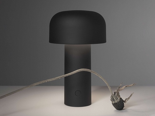 Настольные переносные светильники FLOS. BELLHOP MATTE BLACK, арт F1060031, цвет матовый черный, USB-C, автономность 24ч, диммируемый, H=210 мм, под лампу 84 LED 2,5W 151lm 2700K CRI90.