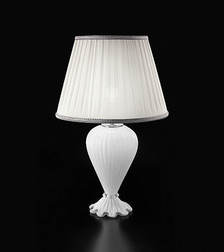 Настольные светильники SYLCOM. TEODORA Модель 1462/52/K/BL/CR, хромированная металлическая конструкция, отделка молочно-белым хрустальным стеклом, H=870 мм, под лампу E27 70W.