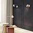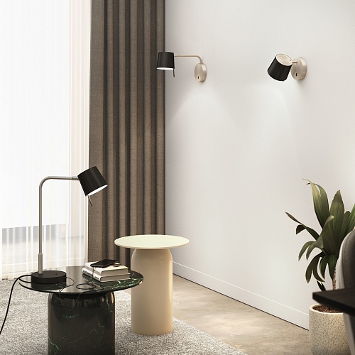 Встроенный источник света с блоком питания. Он оснащен изготовленным на заказ рассеивателем для уменьшения бликов и износостойким шарнирным соединением для легкой регулировки. Аккуратно подобранный абажур и корпус могут быть выполнены в сочетании матового никеля, матового золота и матово-черного цвета.