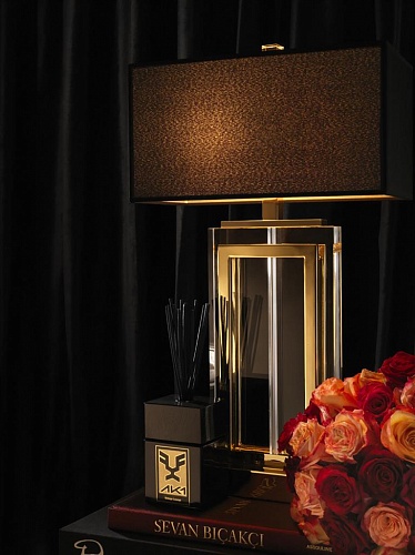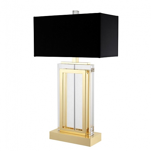 Настольные светильники EICHHOLTZ. ARLINGTON, арт 109973, золотая отделка, хрустальное стекло, черный абажур, H=675 мм L=380 мм W=200 мм, под лампы 2xE27 60W.