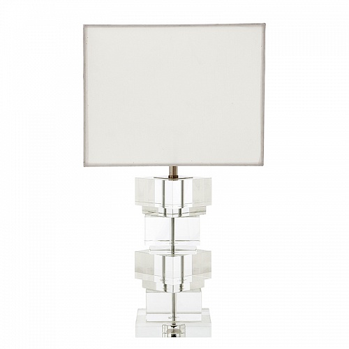 Настольные светильники EICHHOLTZ. BONDS, арт 107339, никелированная отделка/хрусталь, белый абажур, H=650 мм L=350 мм W=350 мм, под лампу E27 60W.