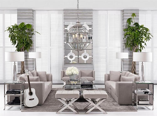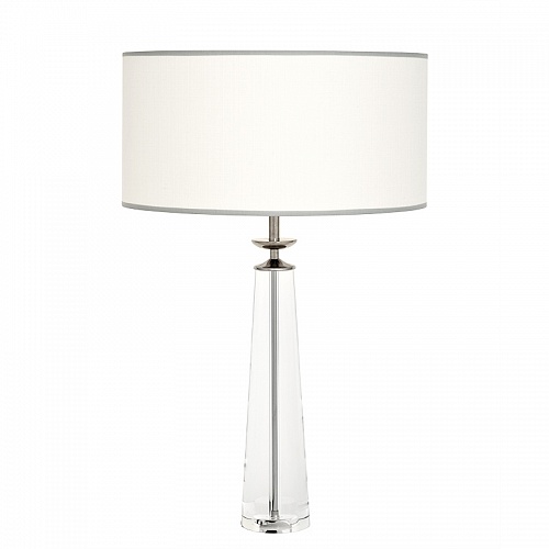 Настольные светильники EICHHOLTZ. CHAUMON, арт 108438, никелированная отделка/хрусталь, белый абажур с серой окантовкой, H=770 мм D=500 мм, под лампу E27 60W.
