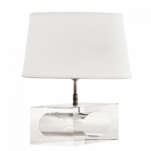 Настольные светильники EICHHOLTZ. COLLIER, арт 108490, никелированная отделка/хрусталь, белый абажур, H=365 мм D=320 мм, под лампу E27 40W.