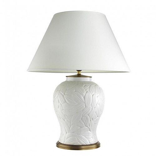 Настольные светильники EICHHOLTZ. CYPRUS, арт 110952, отделка античная латунь, белая керамика, белый абажур, H=850 мм D=650 мм, под лампу E27 40W.