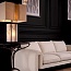 Все указанные размеры являются приблизительными и могут отличаться на 2%. Он имеет корпус из алебастра в бронзовой рамке с подсветкой и поставляется с абажуром из льняной смеси, который имеет крышки с обеих сторон.