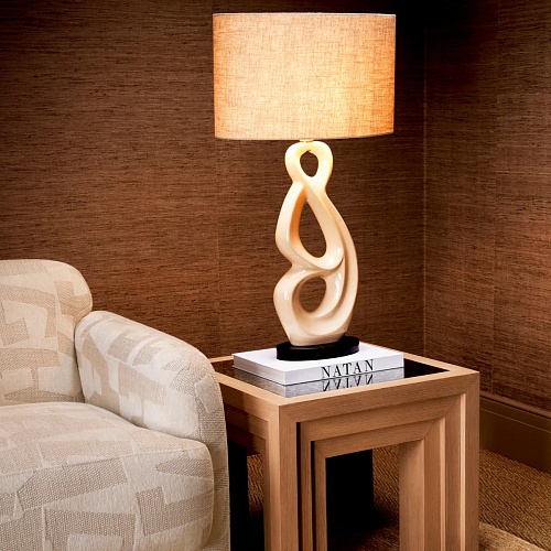 Корпус из белой керамики с потрескиваниями, отделка под старину из латуни и гладкое основание из черного гранита создают гармоничное сочетание текстур и цветов. Осветите свое пространство завораживающим светом настольной лампы Macias, в которой роскошь сочетается с безупречным дизайном.