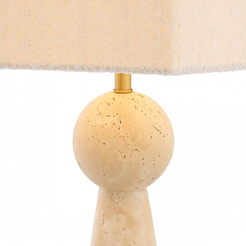 Все указанные размеры являются приблизительными и могут отличаться на 2%. Абажур цвета букле подчеркивает естественную текстуру основания из травертина.