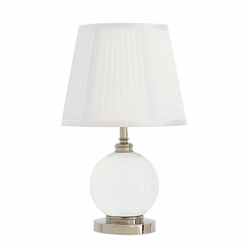 Настольные светильники EICHHOLTZ. OCTAVIA, арт 107228, никелированная отделка/хрусталь, белый абажур, H=405 мм D=250 мм, под лампу E27 60W.
