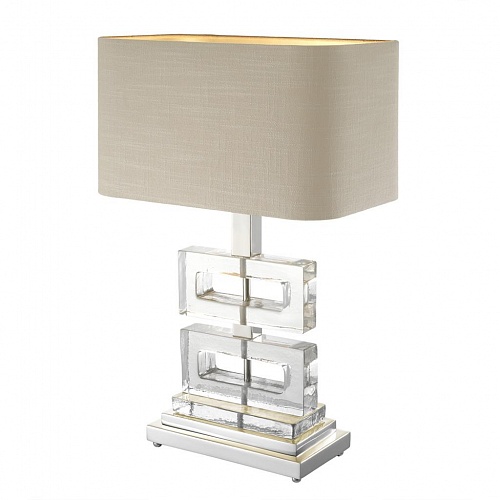 Настольные светильники EICHHOLTZ. UMBRIA, арт 111097, никелированная отделка, прозрачное стекло ручной работы, абажур из натурального льна, H=700 мм L=450 мм W=300 мм, под лампу E27 40W.