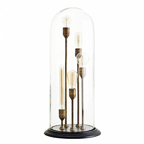 Настольные светильники EICHHOLTZ. VINTAGE JAR OPUS, арт 108581, отделка состаренная латунь, черное основание, прозрачное стекло, H=760 мм D=340 мм, под лампы 5xE27 40W.