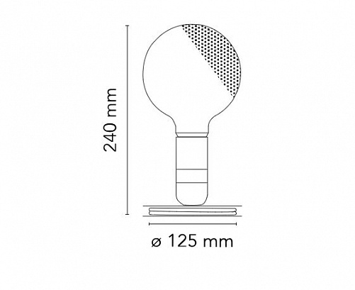 Настольная лампа, дающая прямой, рассеянный свет. Основание из анодированного алюминия служит для удержания лишнего шнура питания. Бакелитовый держатель лампы с выключателем. Прозрачная лампа-глобус частично обработана пескоструйной обработкой для рассеивания света.